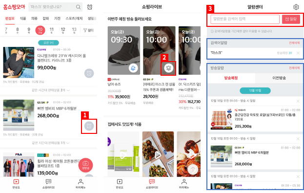 3. 쇼핑라이브 알람을 확인할 수 있는 곳은?
